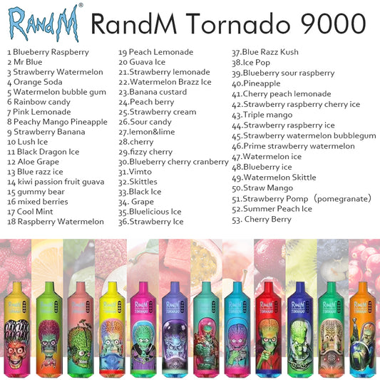 RANDM TORNADO 9000 Disposable Vape Wholesale,850 mAh 18 ML 50 Flavors