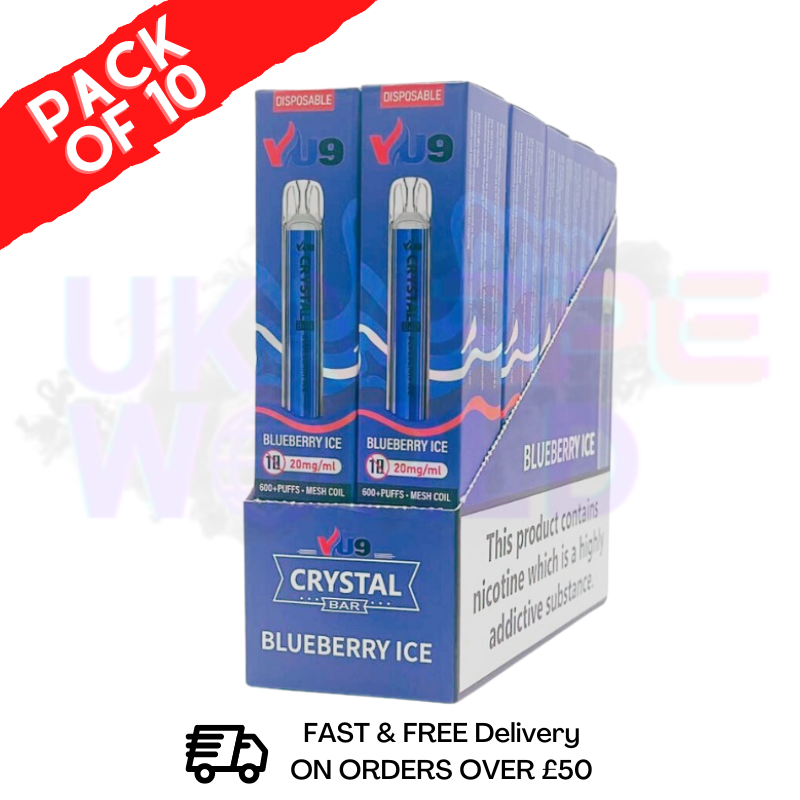 Blueberry ICE - VU9 Classic Pack Of 10 Cheap Disposable sweet and candied freshly picked blue berries profile with a hint of cool mint delivers a fresh and inviting flavor