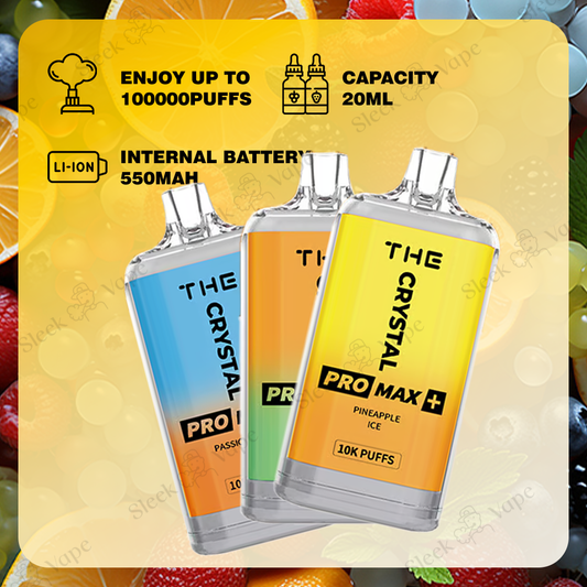 WGA THE Crystal Pro Max 10000 PUFF Disposable Vape In Sales-550mAh Battery, 20ml E-liquid, Multiple Nicotine 28 Flavors
