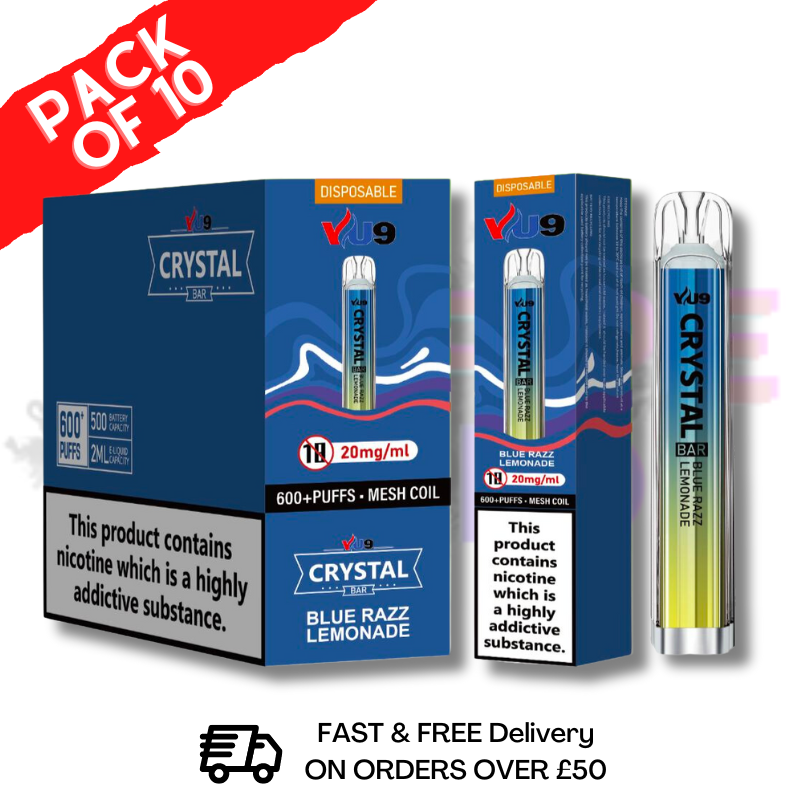 Blue Razz Lemonade VU9 Classic Pack Of 10 Cheap Disposable is a crisp clean and cool vaping experience with a refreshing breath of minty freshness. Enjoy the perfect balance of sweet and tart in each puff. A perfect addition to the VU9 600 Range!