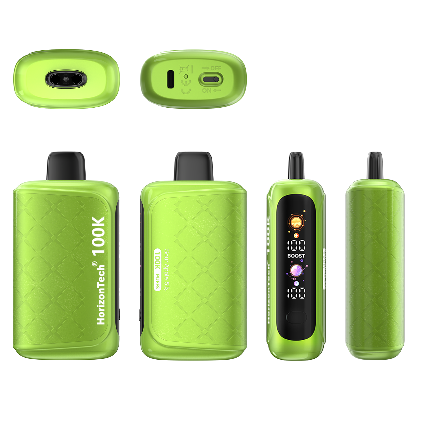 Indulge in luxury with the Horizontech 100K Puff 40ML Disposable. Experience the world's first 100,000 puff disposable, equipped with a huge 40ml tank and a powerful 1500mAh battery. Enjoy stepless adjustable airflow and quad mesh coils for a smooth and extremely flavorful vape, all complemented by a sleek leather wrap for ultimate comfort. Choose between regular mode for 30 watts and 100k puffs, or boost mode for 40 watts and 60k puffs, all in a compact and exclusive design.