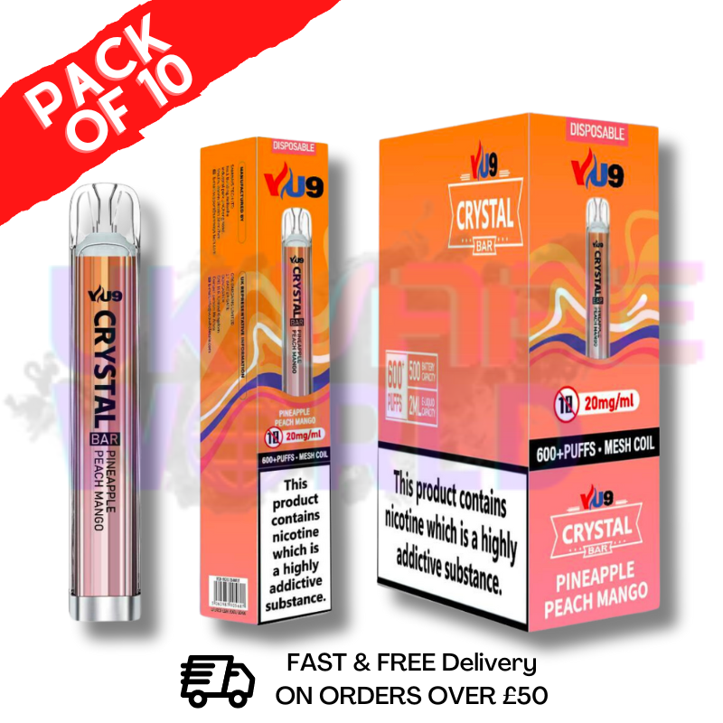 Pineapple Peach Mango - VU9 Classic Pack Of 10 Cheap Disposable one-of-a-kind blend of fresh, tangy pineapple, sweet peaches and luscious mangoes creates a refreshing and uplifting tropical mix. Get 10 boxer today and enjoy!