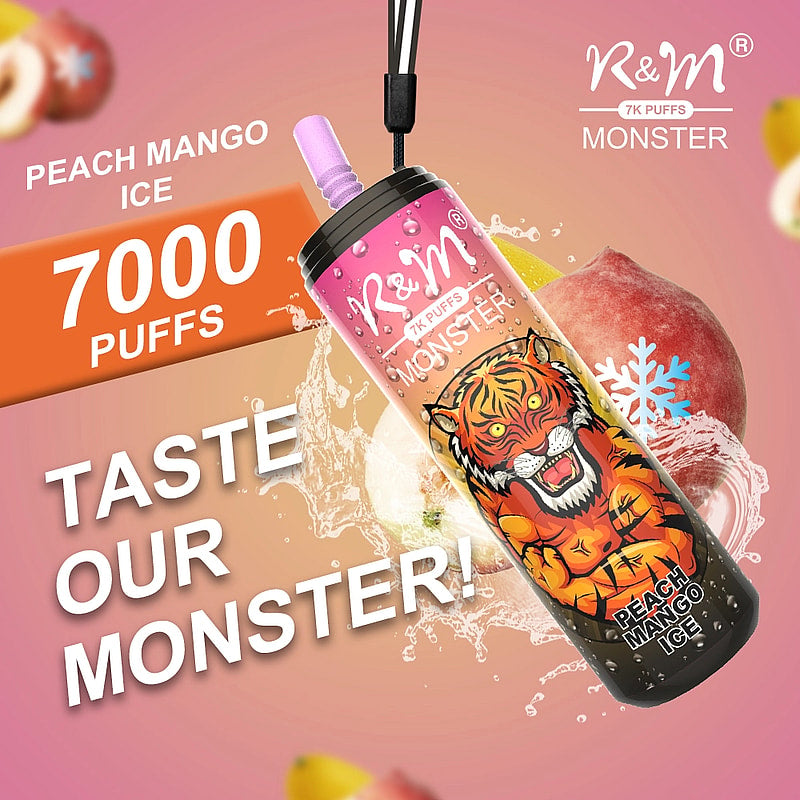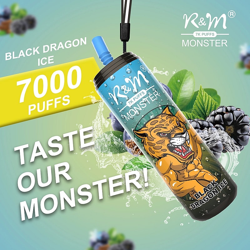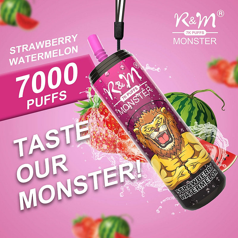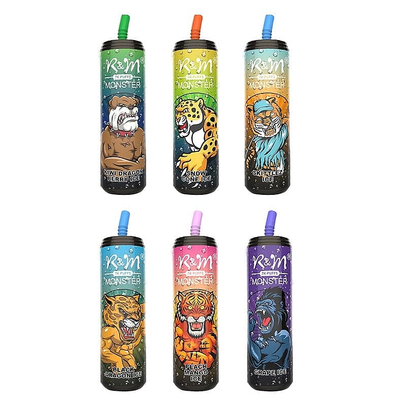 R&M Monster 7000 Puffs Disposable features a Cola Can shape, 15ml large e-juice capacity, 5% nicotine level, and a rechargeable battery for up to 7000 puff count. Monster Vape has a mesh coil, which caters to MTL vapors, along with 5%(50mg) nicotine, it gives you a more potent nicotine hit for effortless vaping. The monster bar is recharged via Type-C port, and is convenient to take by utilizing a lanyard.