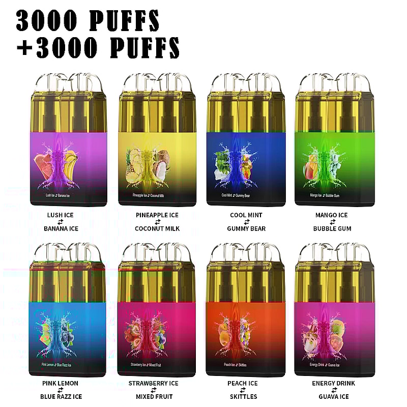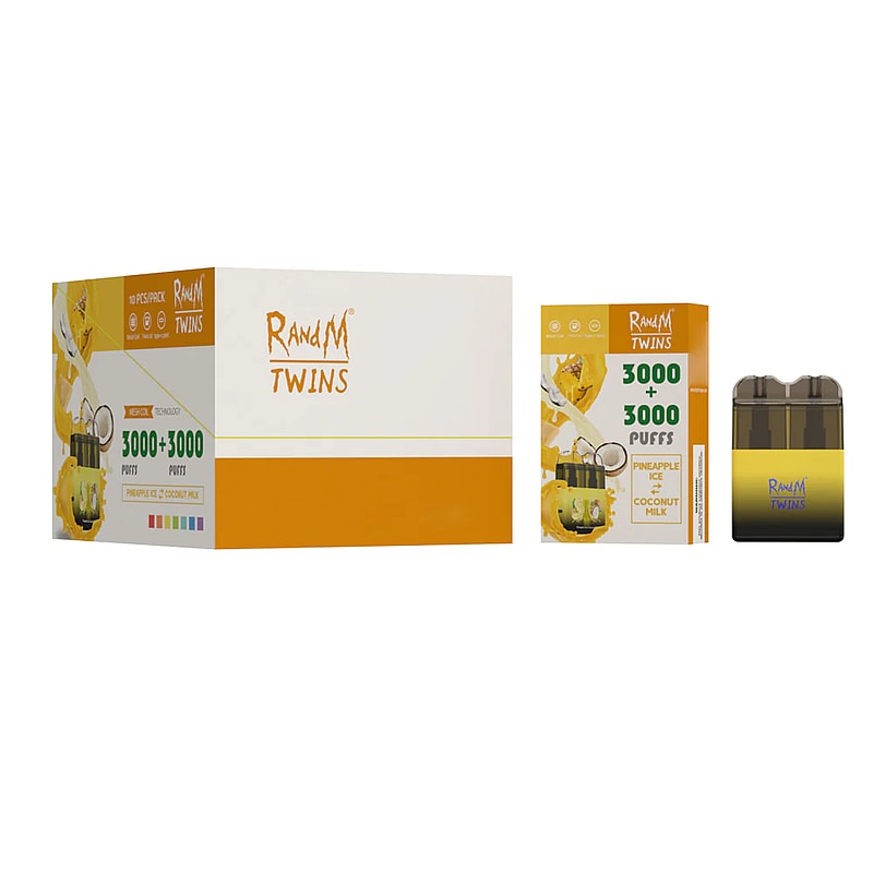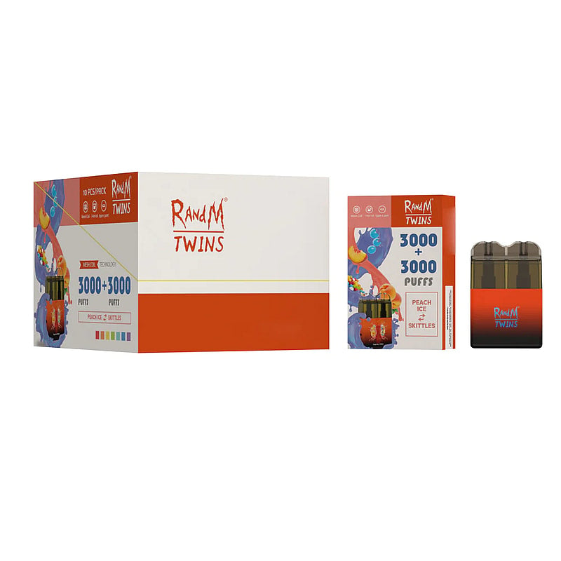 RandM Twins is a disposable 2in1 vape device with led light and it is type-c rechargable. It contains 14ml 0/2/3/5% nicotine salt e-juice and vape up to 6000 puffs. There are 8 flavors for you to choose. You can swith between flavors right away whenever you want plus it comes with a rechargeable Type-C port at the buttom of the device, which gurantte you finish the last drop of the ejuice in the tank all the time. The colorful led light makes this device more attractive while vaping.