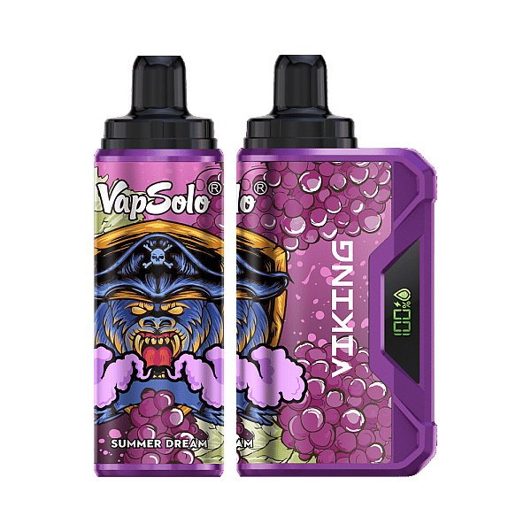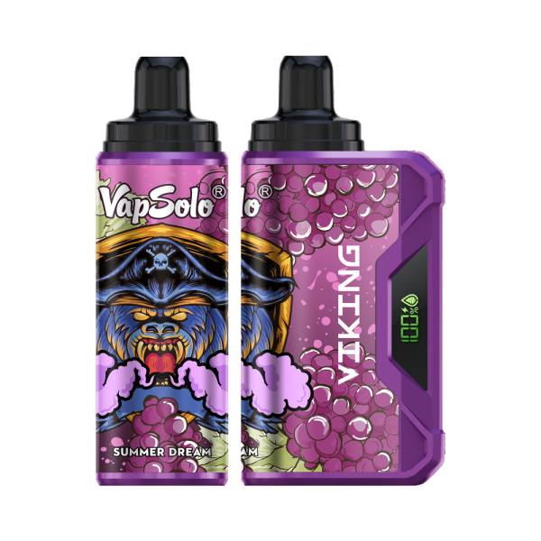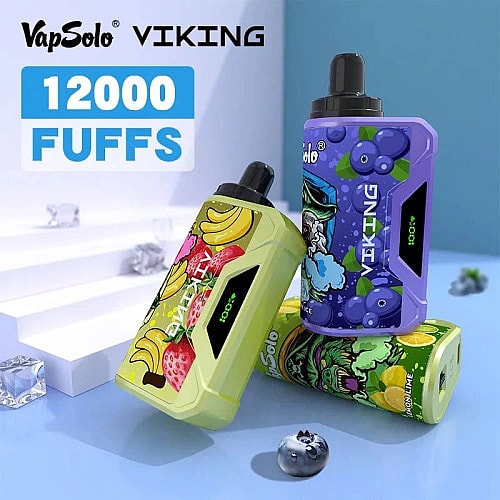 The VapSolo Viking 12K Puffs Disposable Vape offers up to 12,000 puffs with a high 22mL e-liquid capacity. It features 4 adjustable airflow levels for a customizable vaping experience and is powered by a 650mAh rechargeable battery with a Type-C port for fast charging. The mesh coil technology provides smooth vapor and enhanced flavor. The LCD display shows battery and electricity consumption, and it weighs only 85g, making it portable and easy to carry.