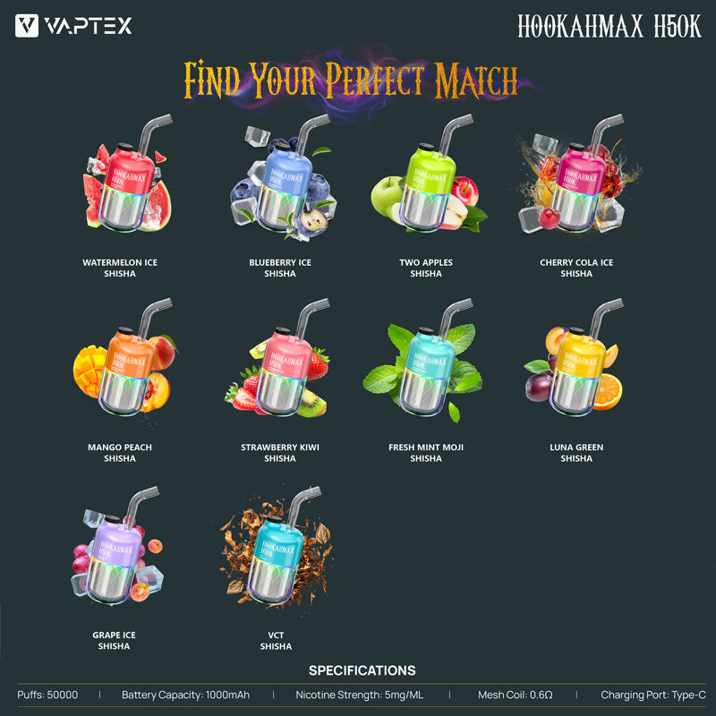 VAPTEX HOOK AHMAX H50000 Puffs Disposable Vape Wholesale