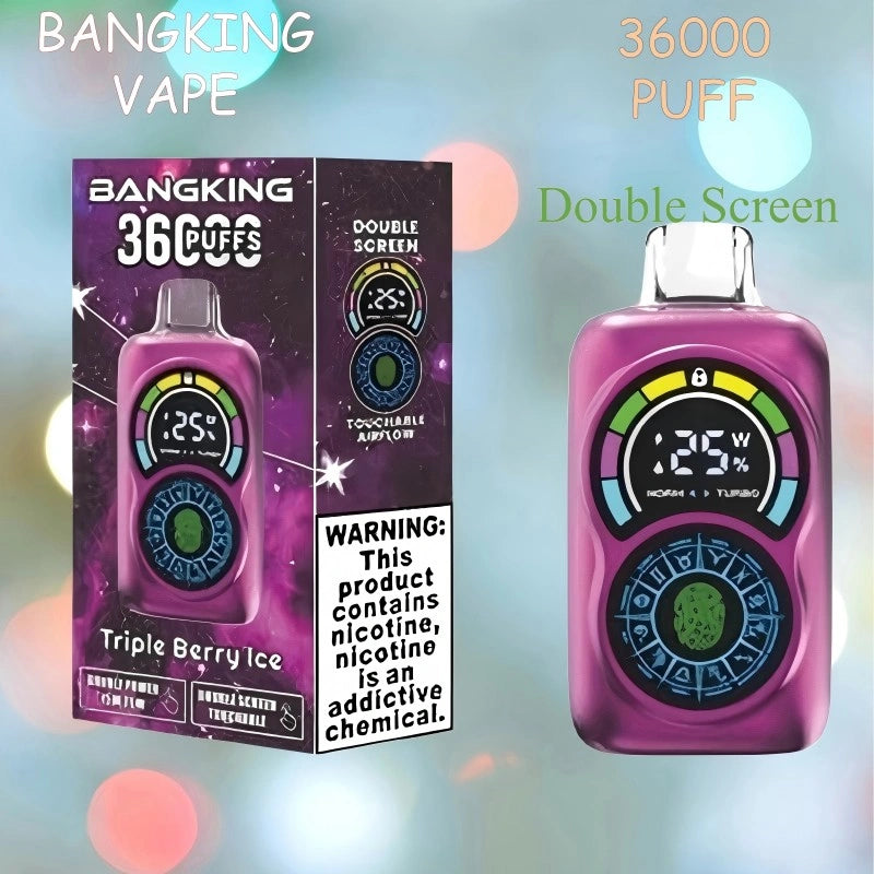 Disposable vape 36000 of bangking stands out with exceptional longevity and innovative design.36000 of bangking vape have 2% or 5% nicotine and the BANGKING 36000 vape double screen delivers a satisfying experience for every preference. vape of bangking 36000 durable build and rechargeable functionality add convenience, ensuring a consistent vaping session every time. and same with the versatility of the Waka Duo model, disposable 36k vape guarantees a seamless blend of flavor, vapor, and reliability.