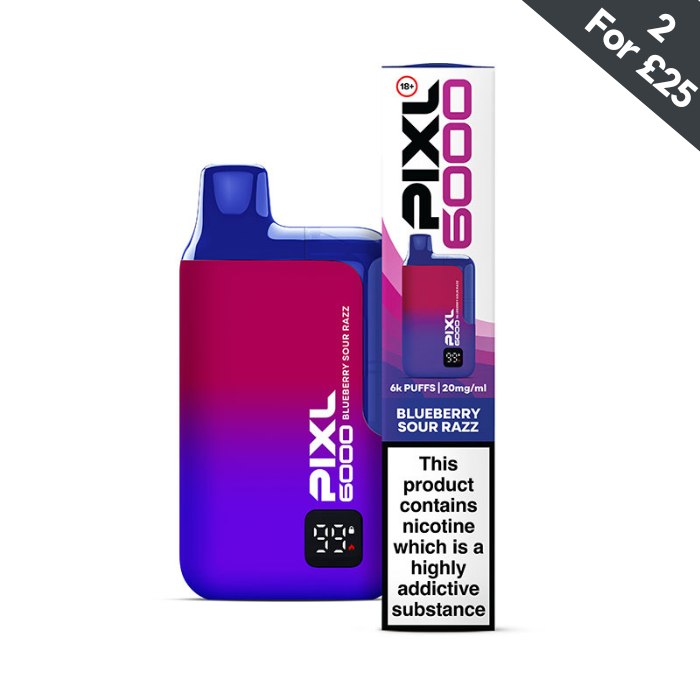 Experience a unique blend of sweet and sour with Blueberry Sour Razz By Pixl 6000. This disposable vape combines the tartness of freshly-picked blueberries with the sourness of raspberries for an unforgettable flavour. Enjoy the perfect balance of flavours in every puff.
