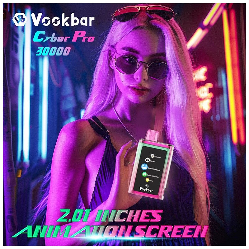 Vookbar Cyber Pro 30000 Disposable Vape is an APP-controlled smart vape with a Bluetooth connection. Equipped with 22ml vape juice and a robust battery. it can satisfy up to 30000 puffs at most. With the WEARINOS APP installed on your phone. you can unlock the versatility of Vookbar Cyber Pro. It can be used as a convenient calculator and receive messages from your phone. Plus. if you feel like a selfie. you can control your phone remotely with this vape. Other functions like games and motion tracking are just waiting for you to enjoy with this Vookbar Cyber Pro.