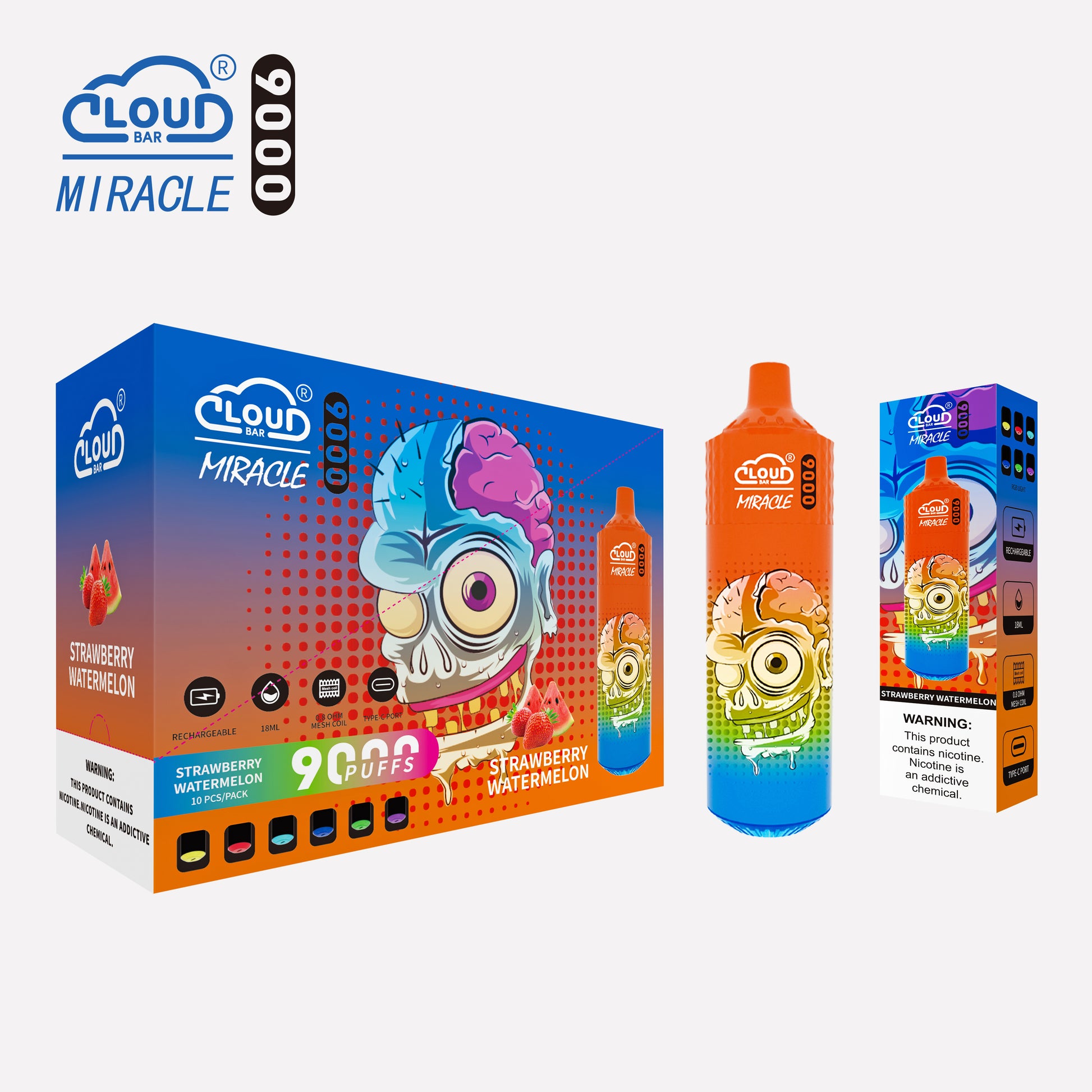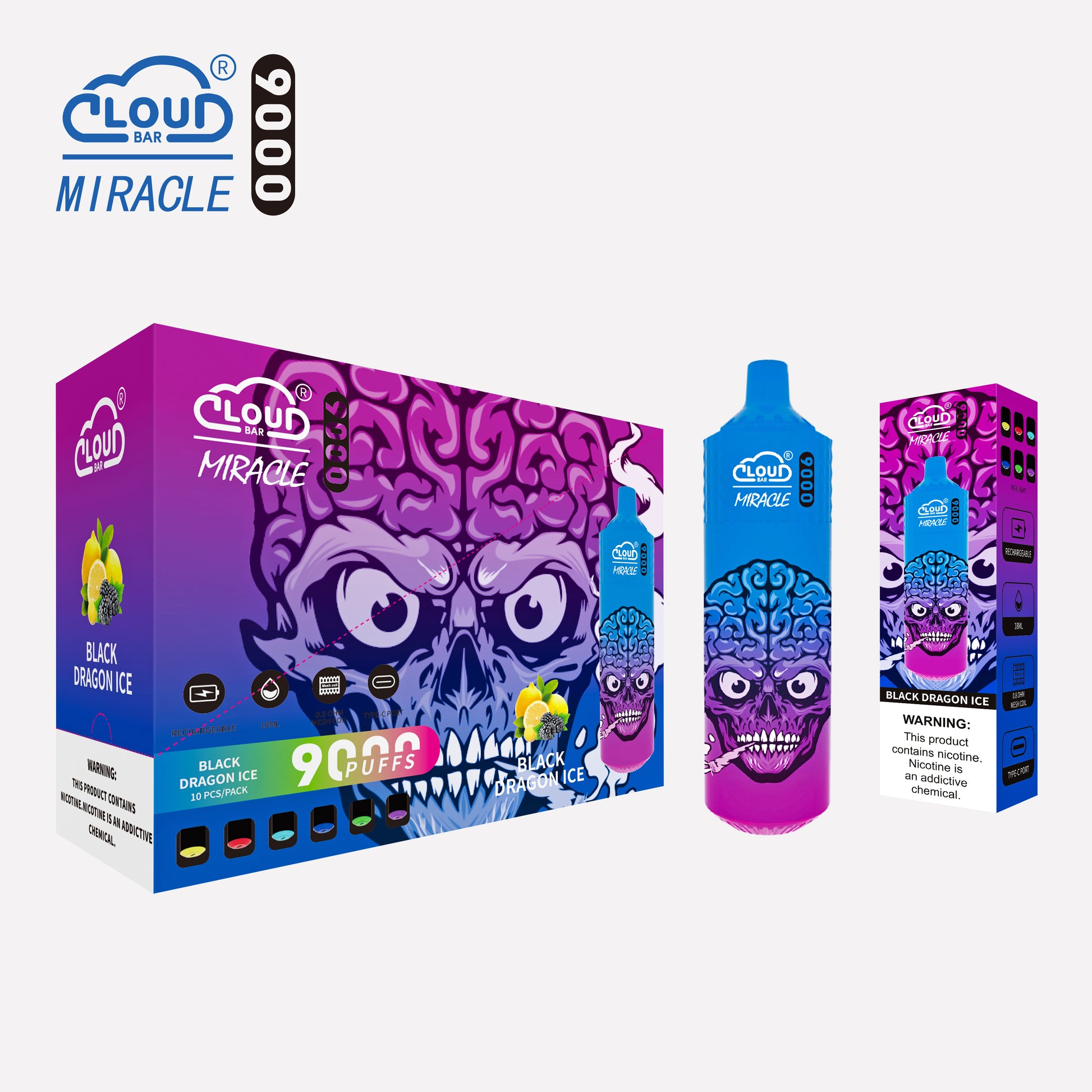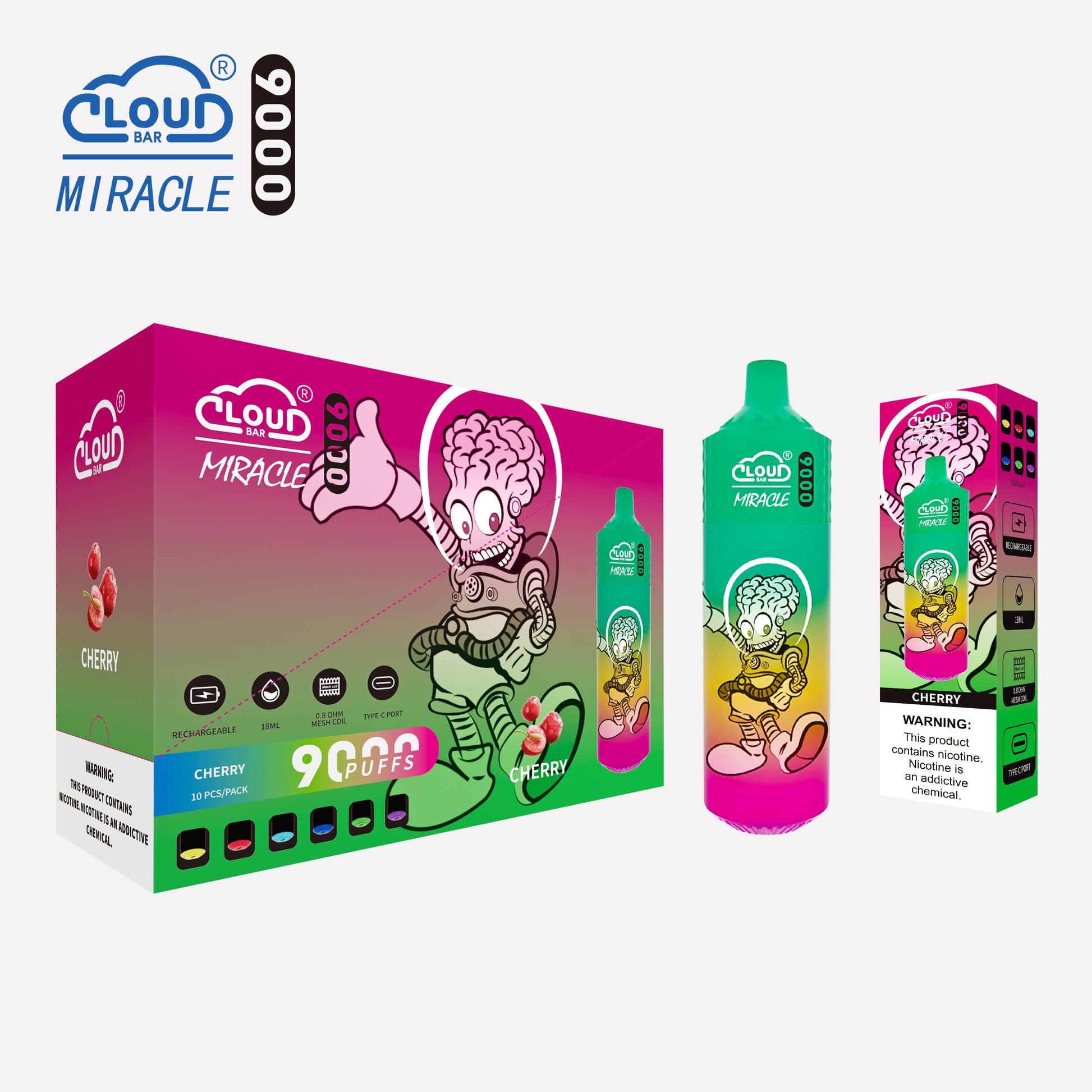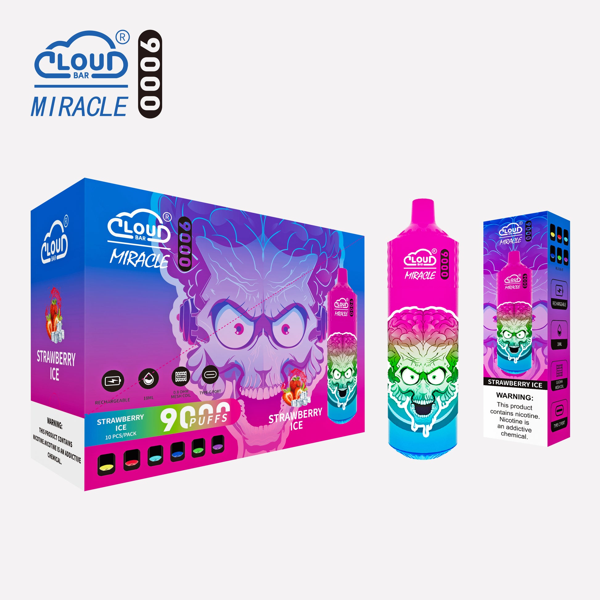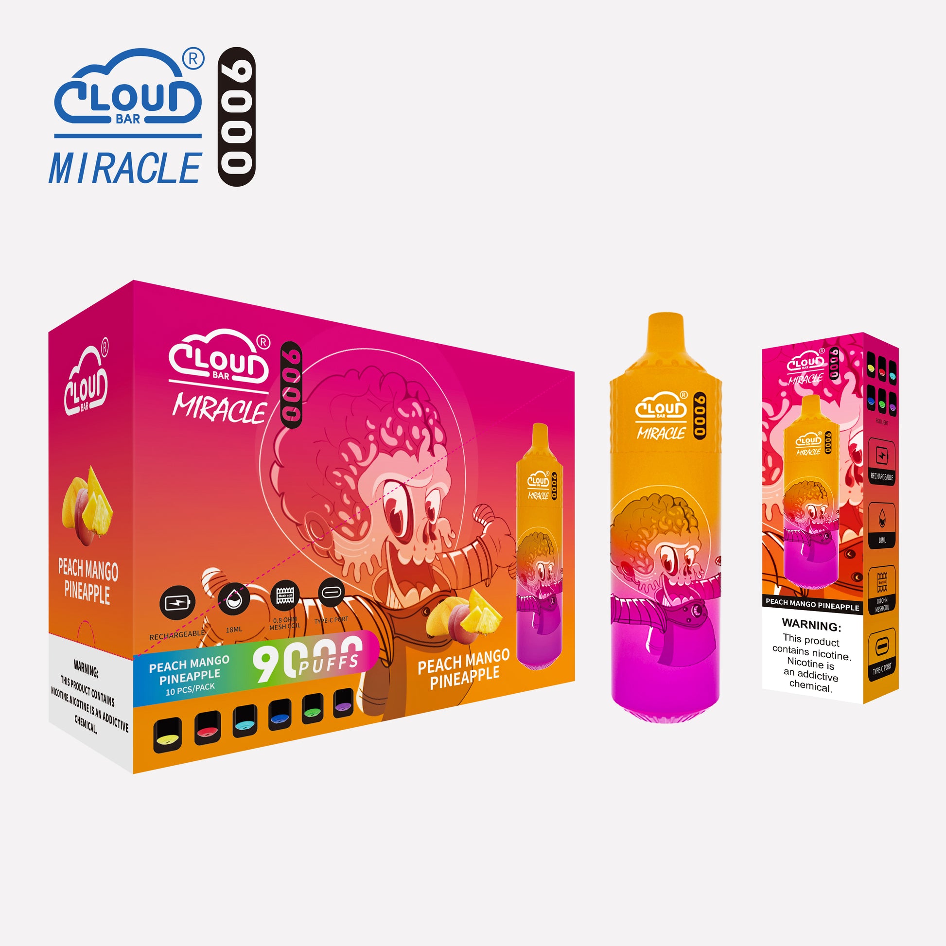 Cloud Bar 9000 Puffs 5% Rechargeable Electronic Vapes Pen 18ml 650MAH 11 Flavors for Cigarettes Lovers