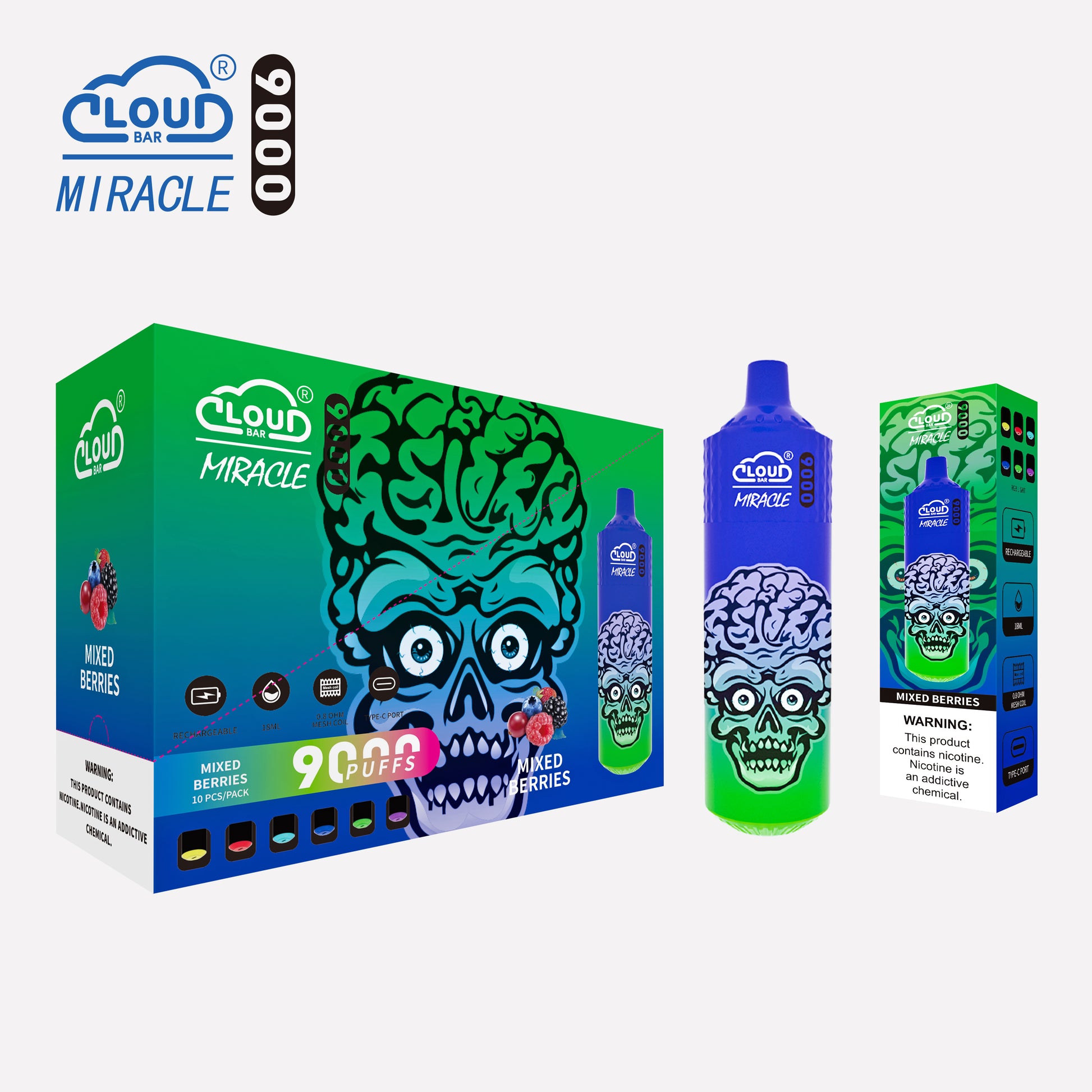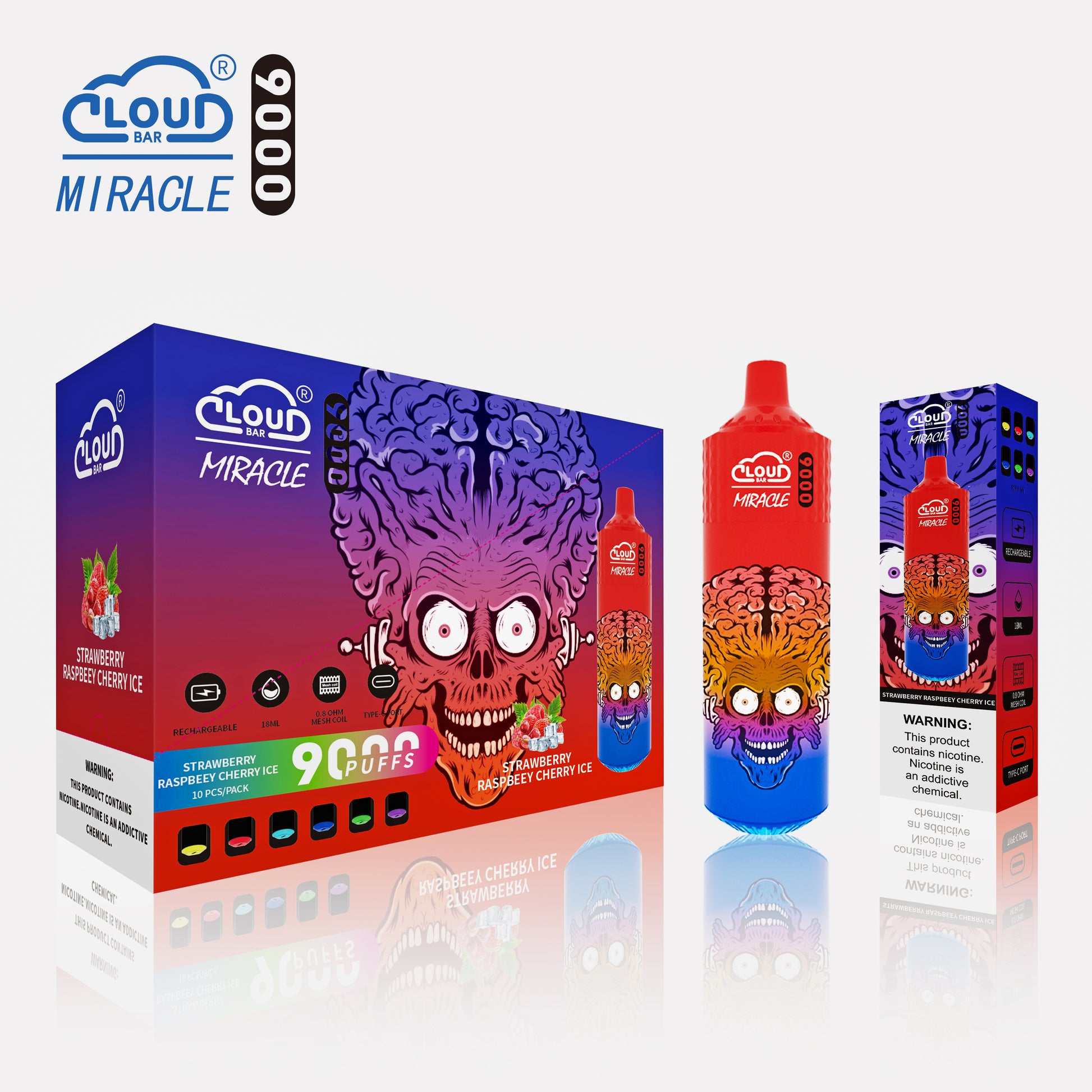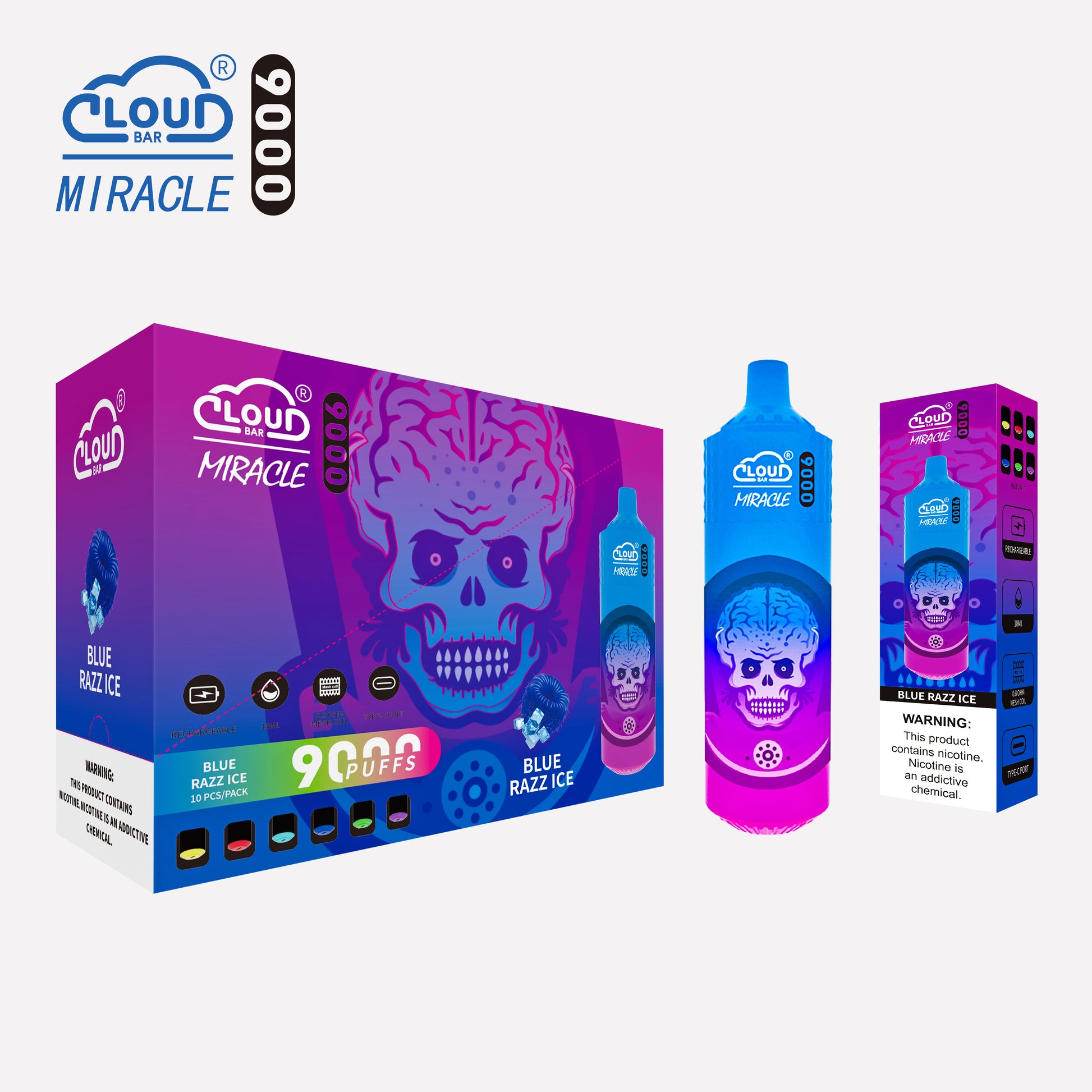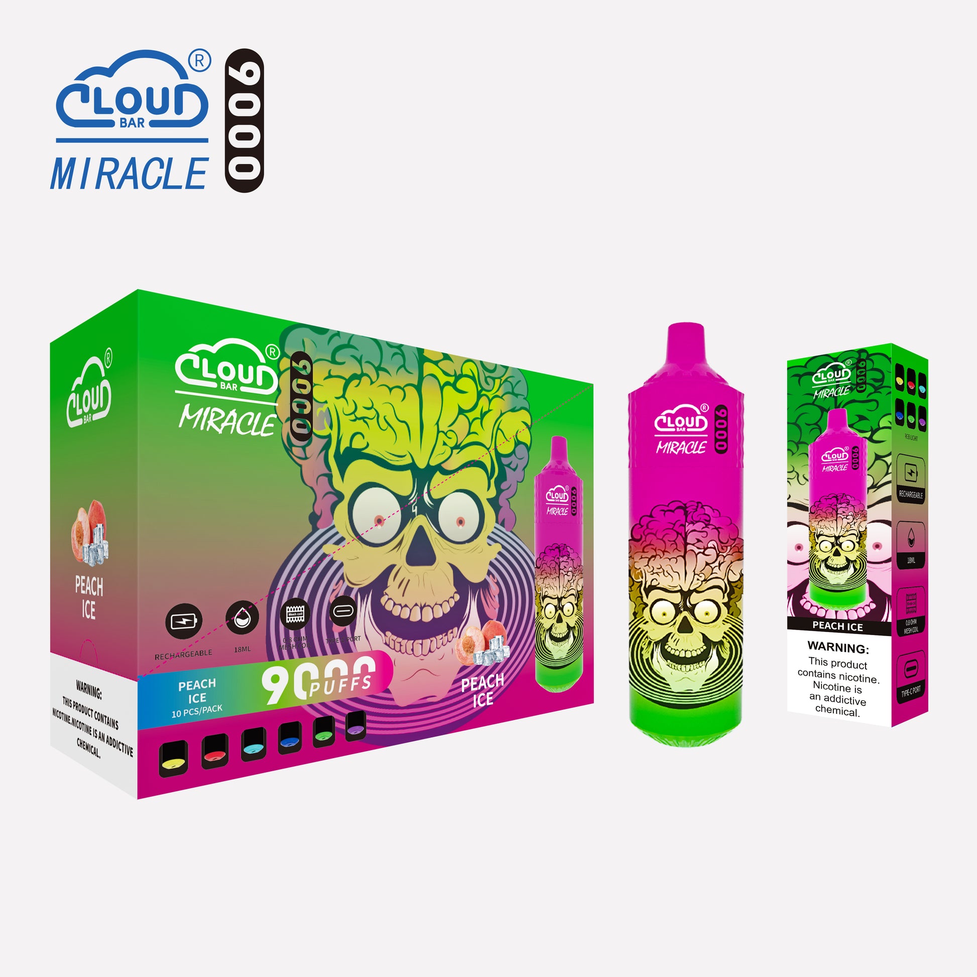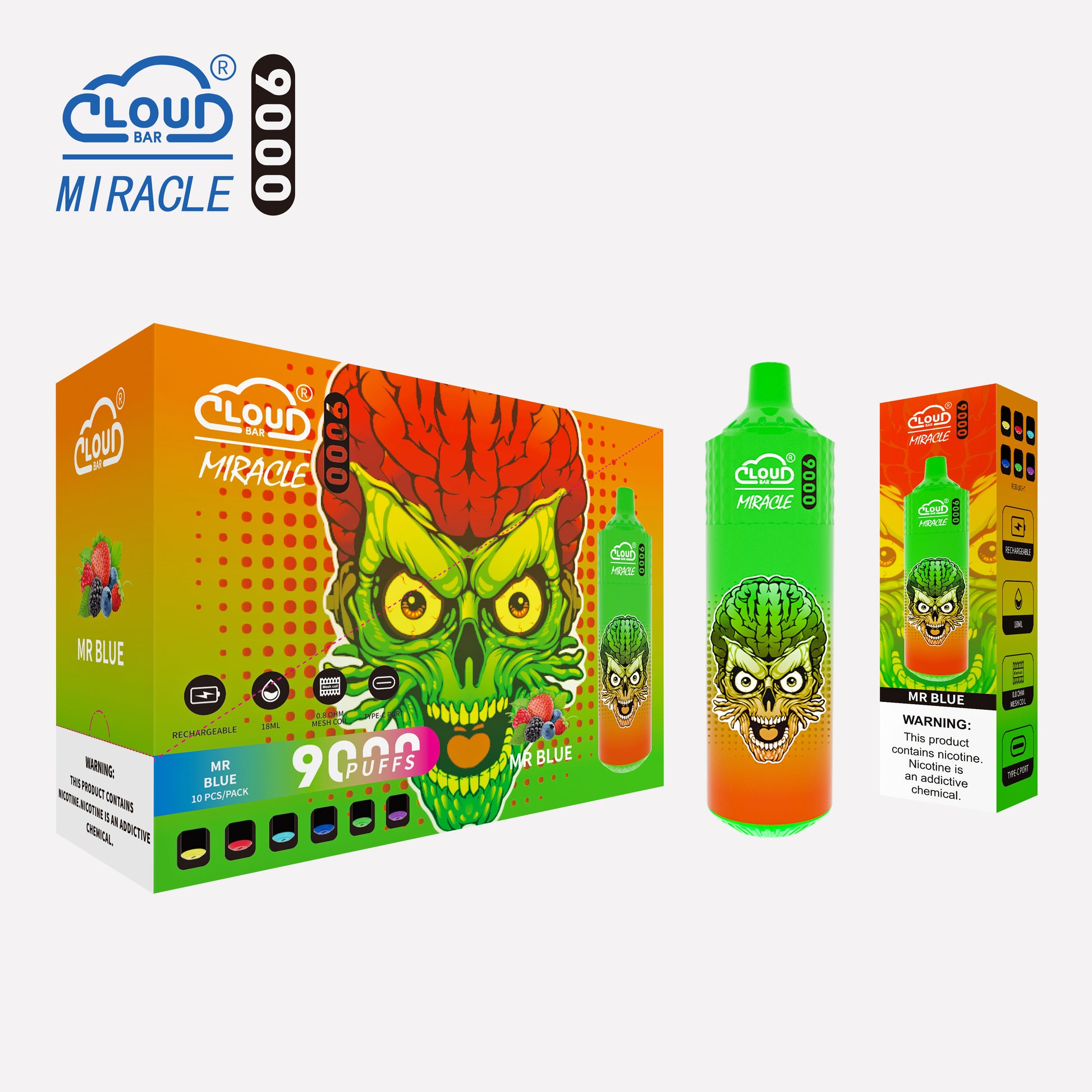 Cloud Bar 9000 Puffs 5% Rechargeable Electronic Vapes Pen 18ml 650MAH 11 Flavors for Cigarettes Lovers
