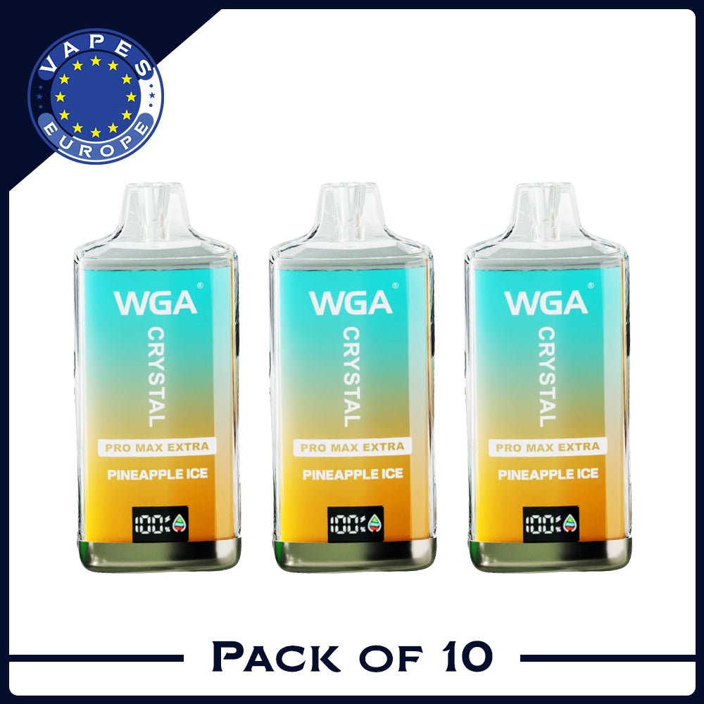 WGA Crystal Pro Max Extra 15000 Puffs Disposable Vape Box Of 10-650mAh Battery, Multiple Nicotine 11 Flavors